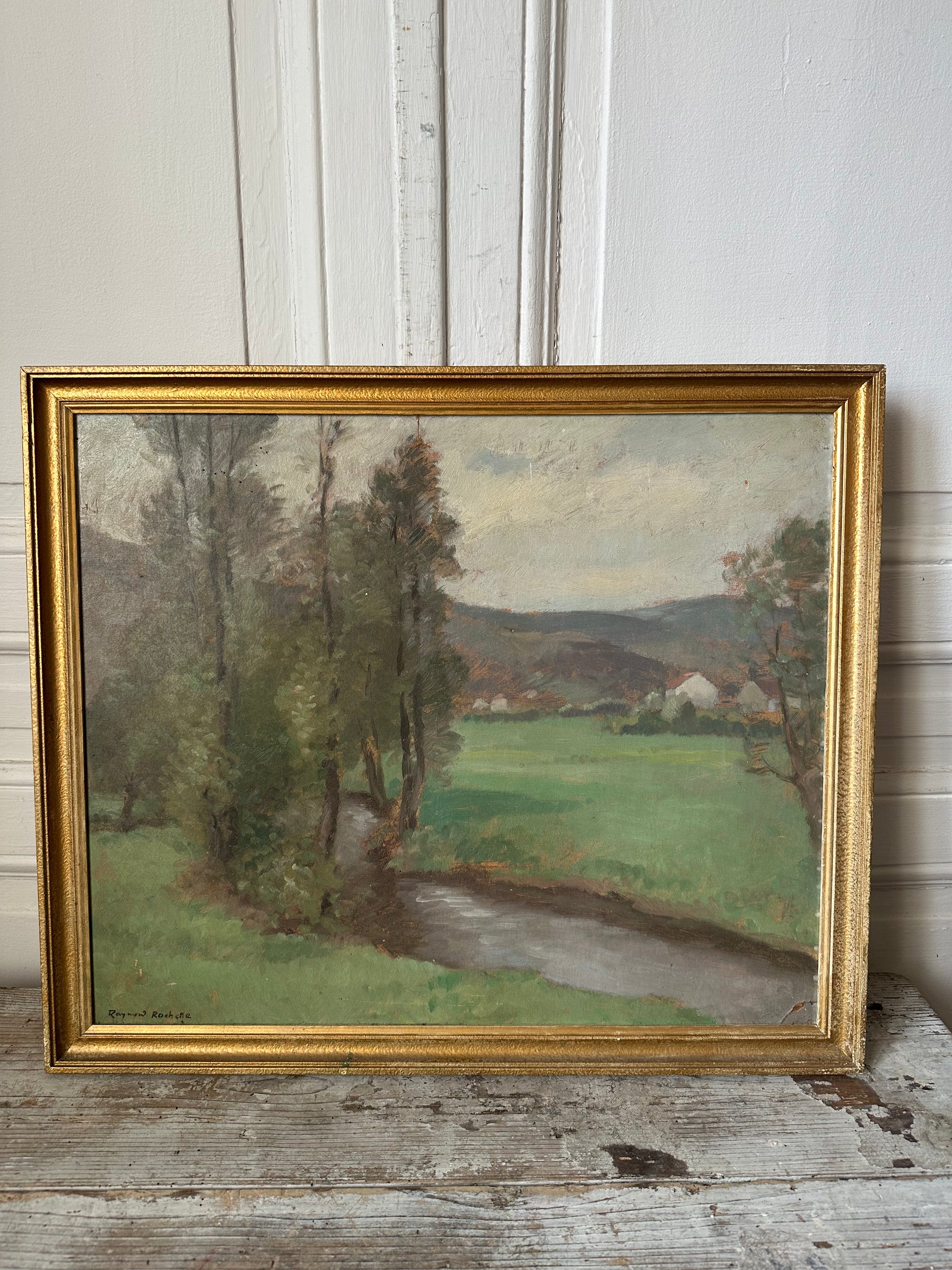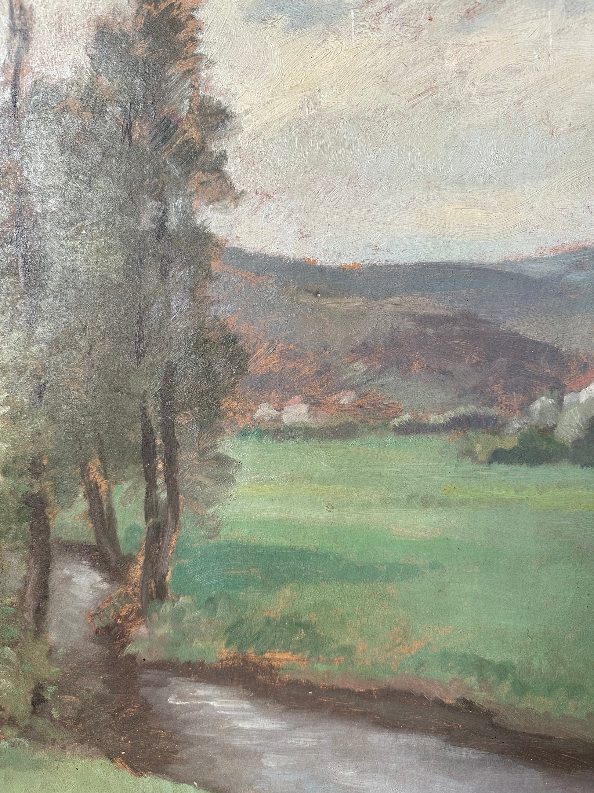Ancienne peinture à l’huile sur panneau cartonné encadrée et signée