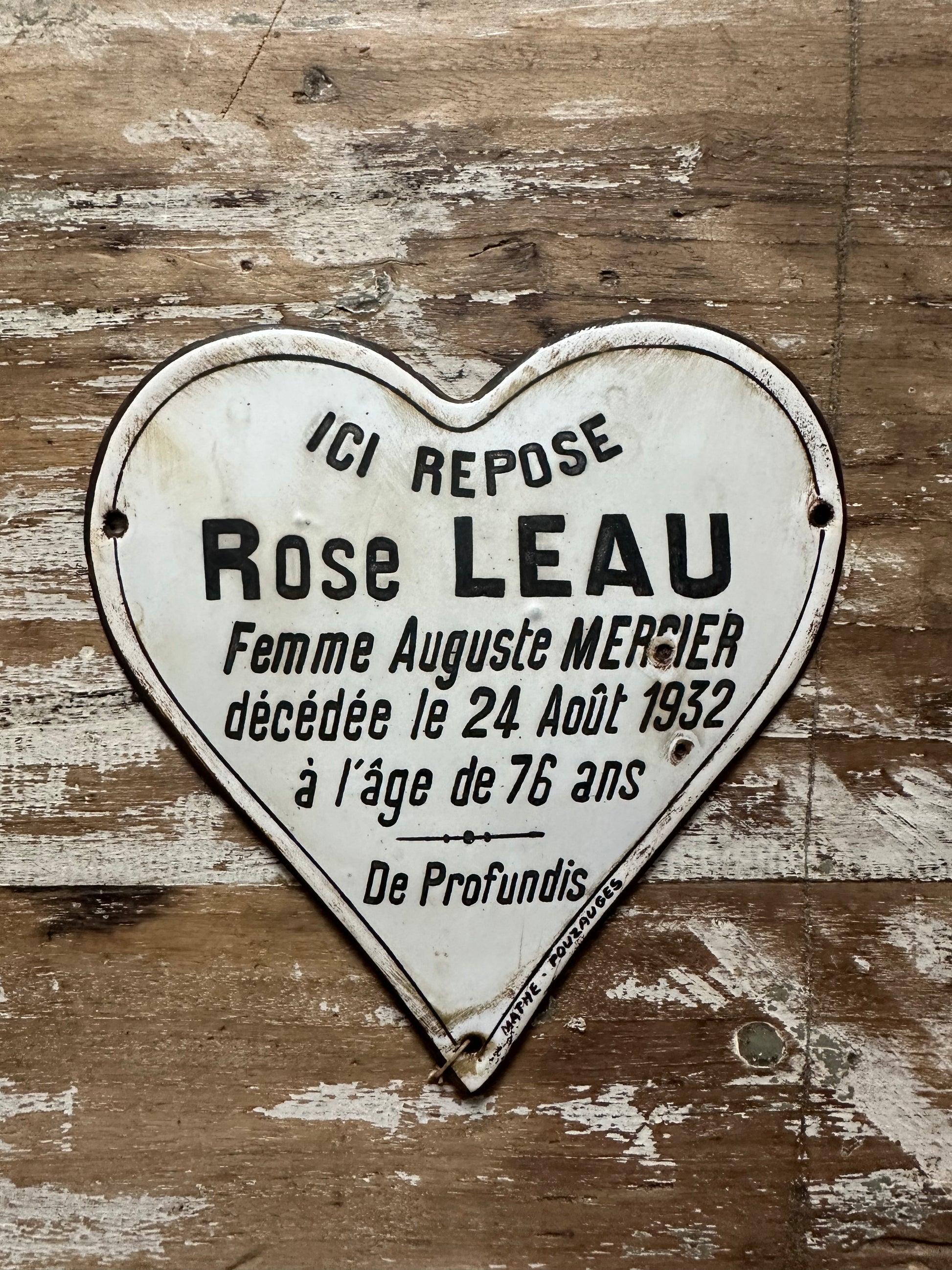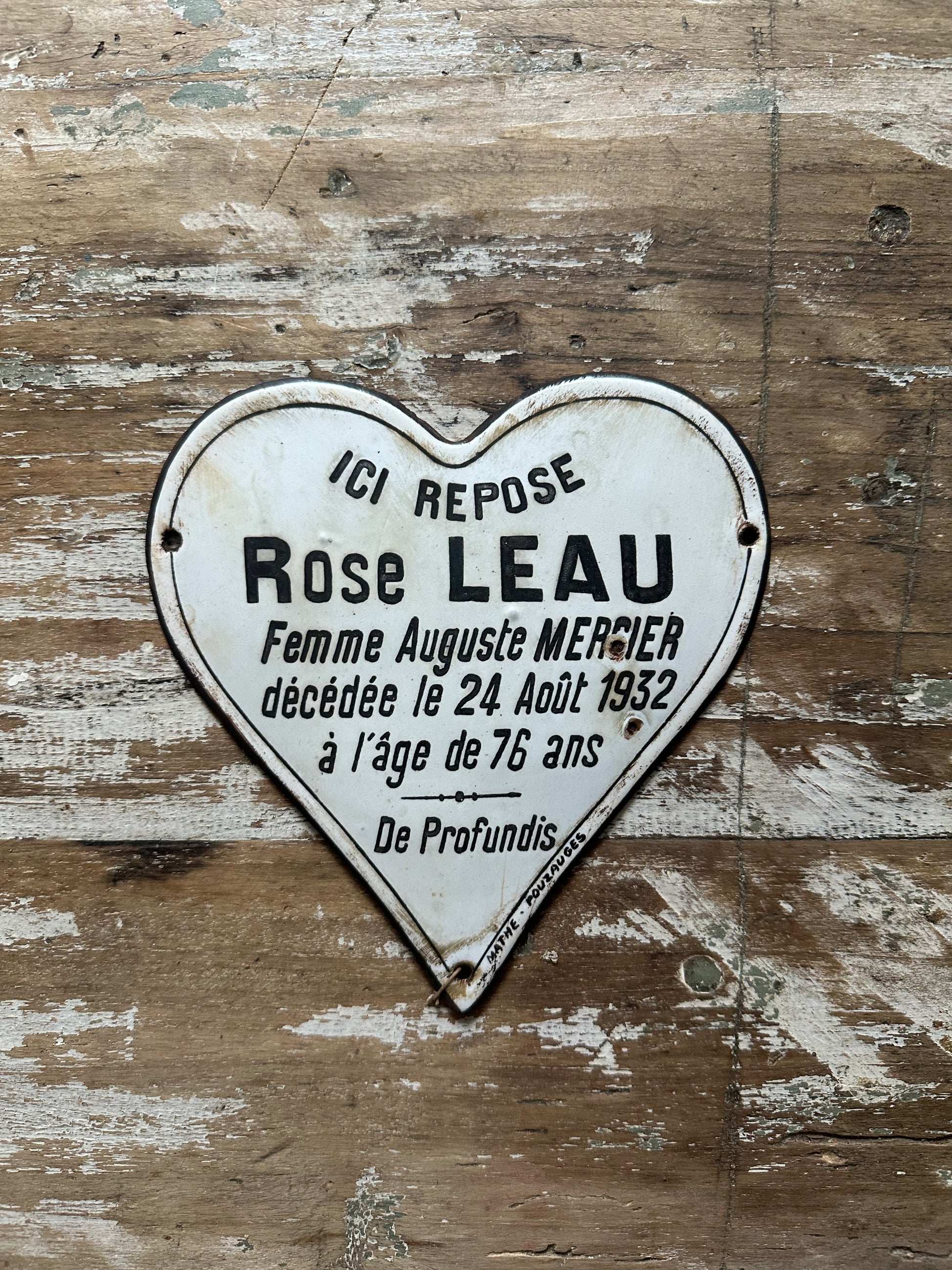Ancienne plaque émaillée cœur du souvenir