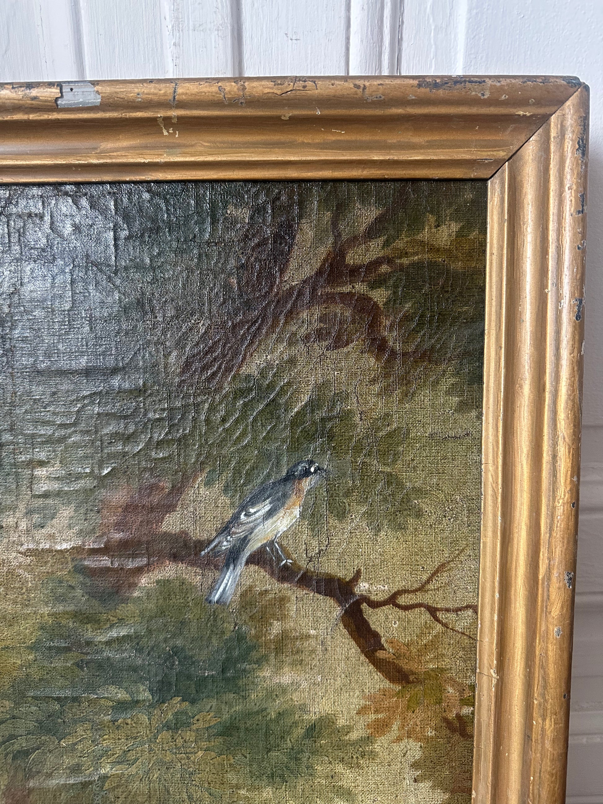 Ancienne peinture à l’huile sur toile du XVIII eme siècle encadrée et marouflée sur isorel