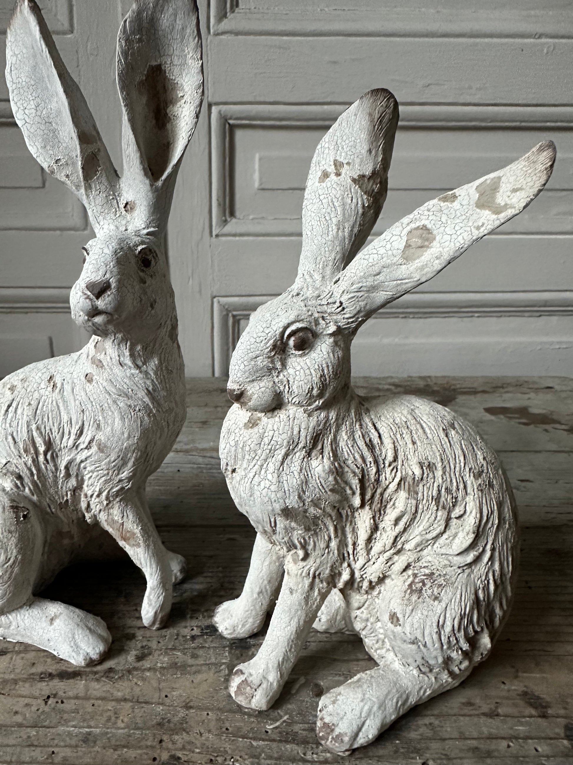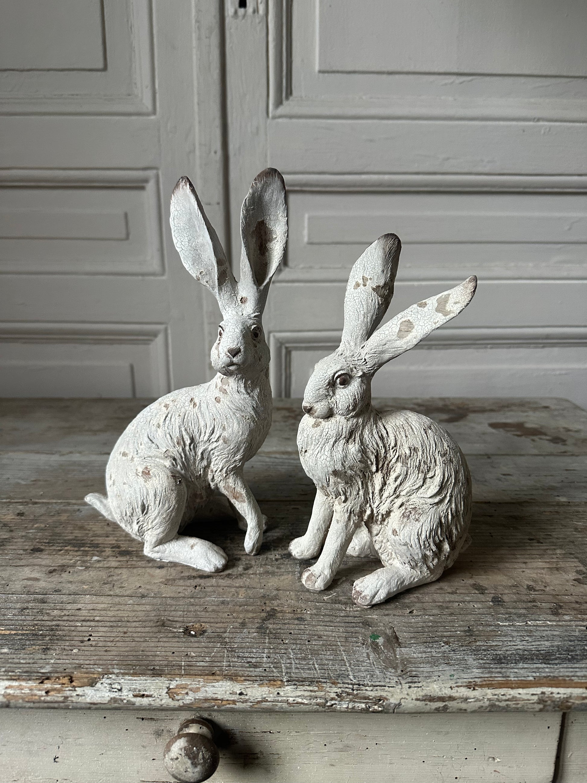 Paire de lapins en résine patinée