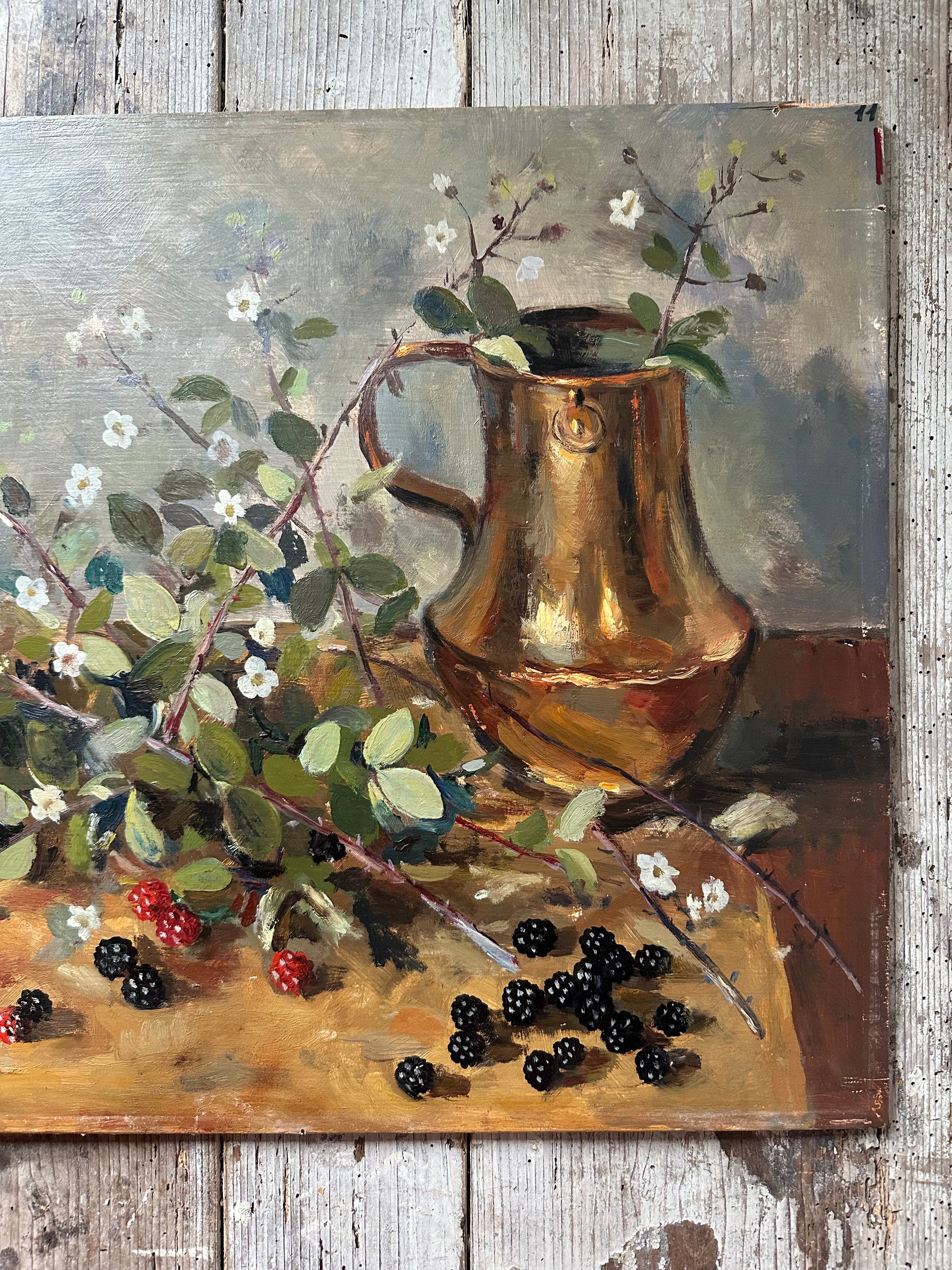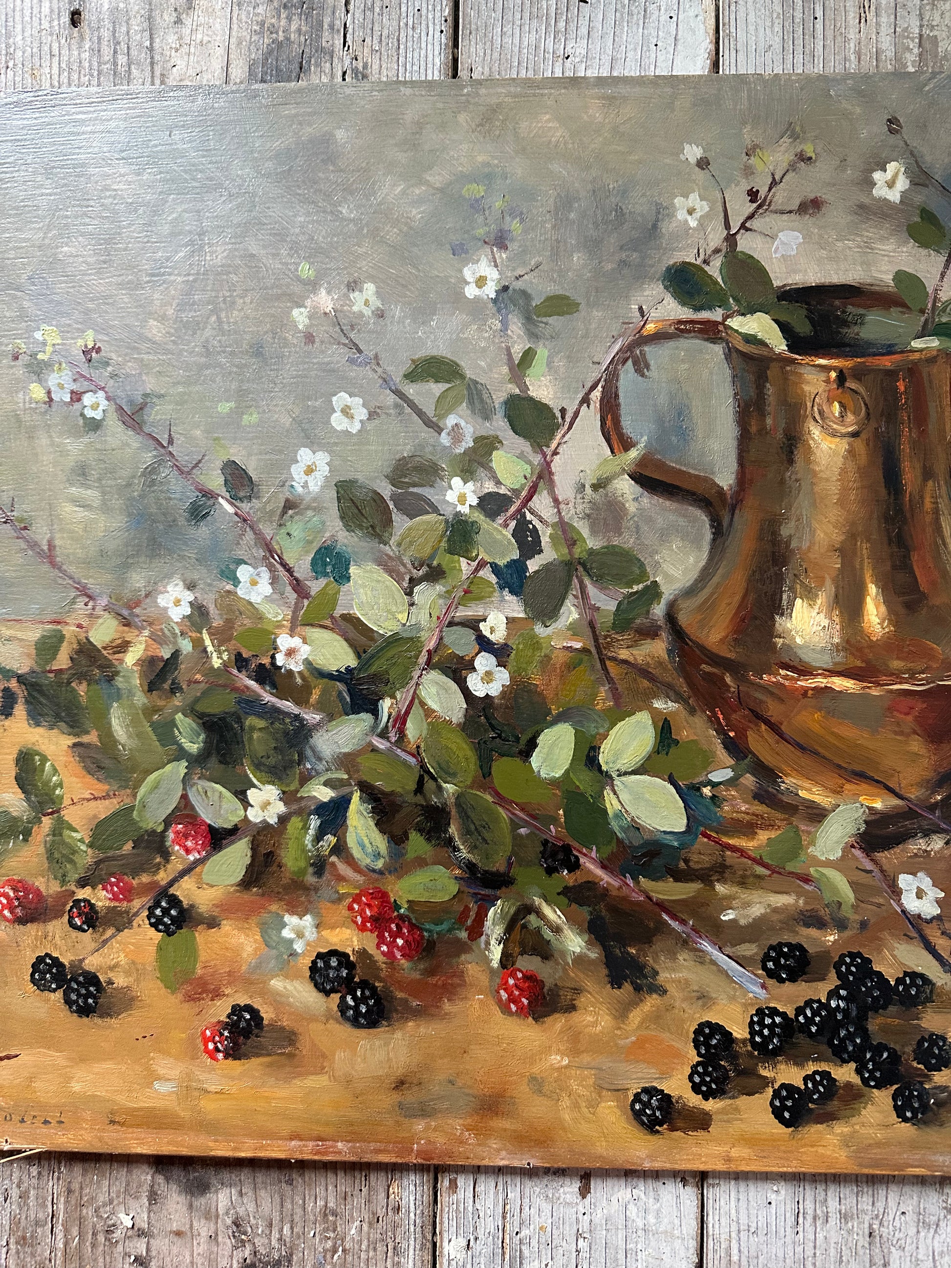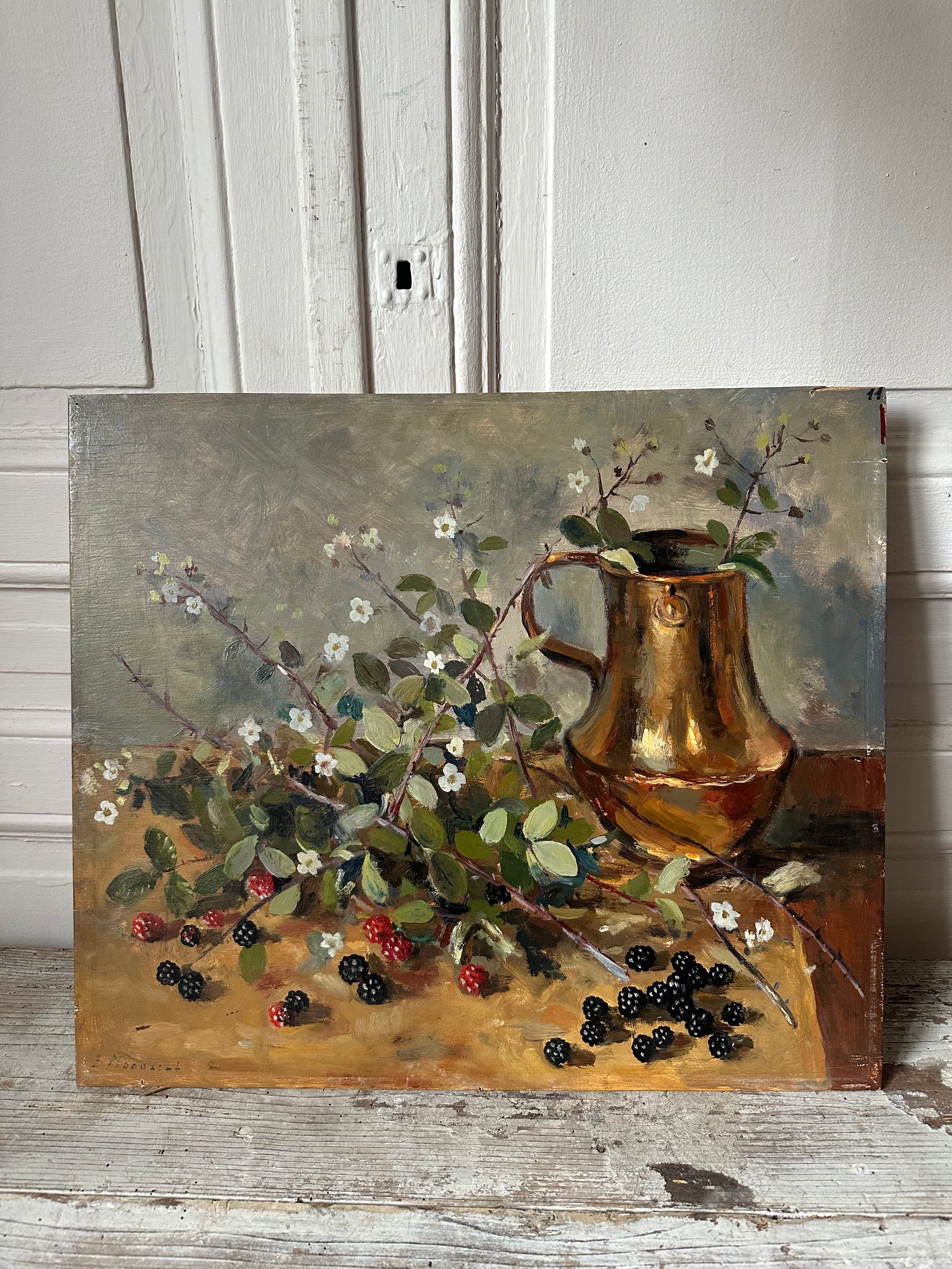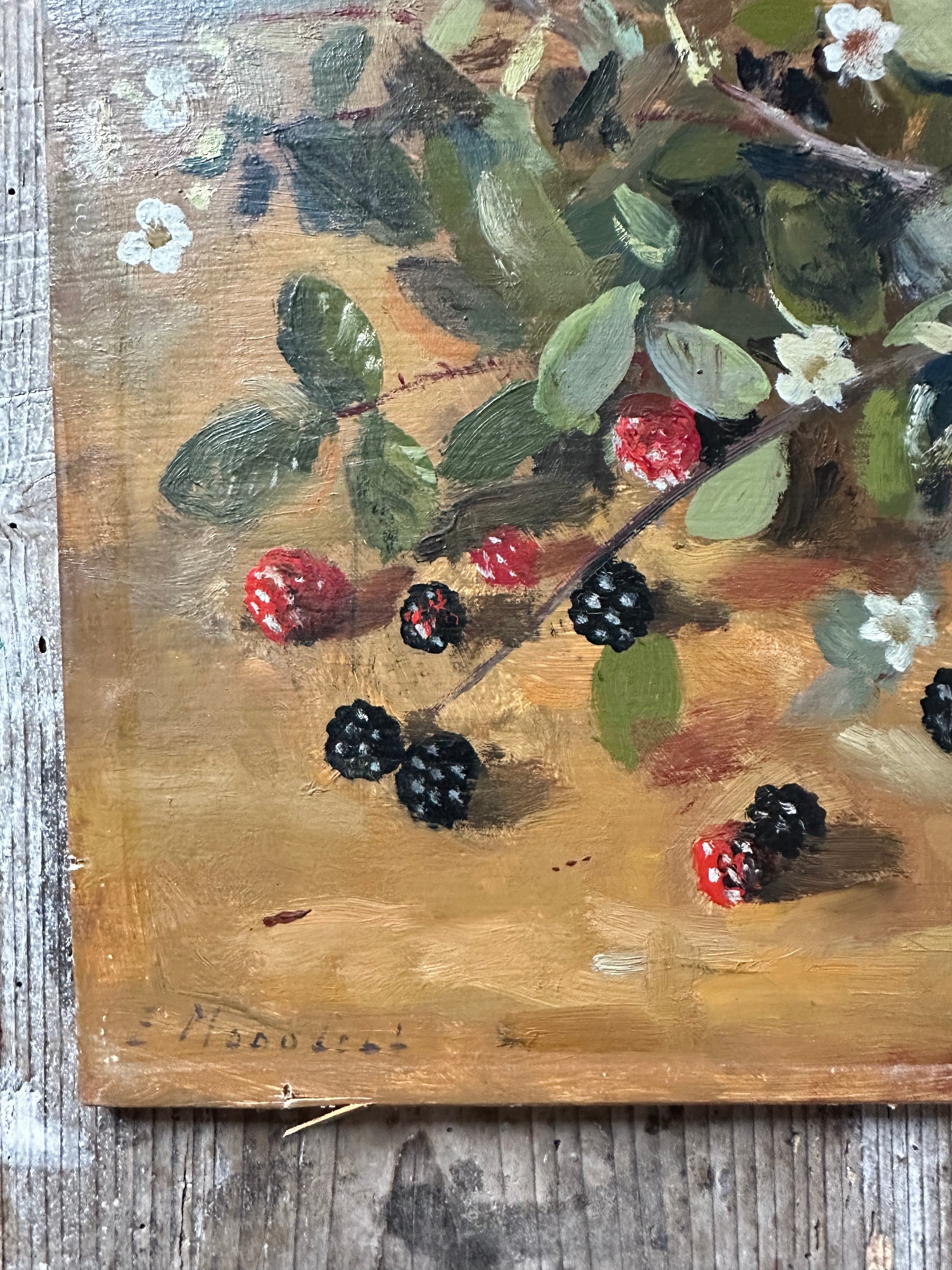 Ancienne peinture à l’huile sur panneau de bois signée
