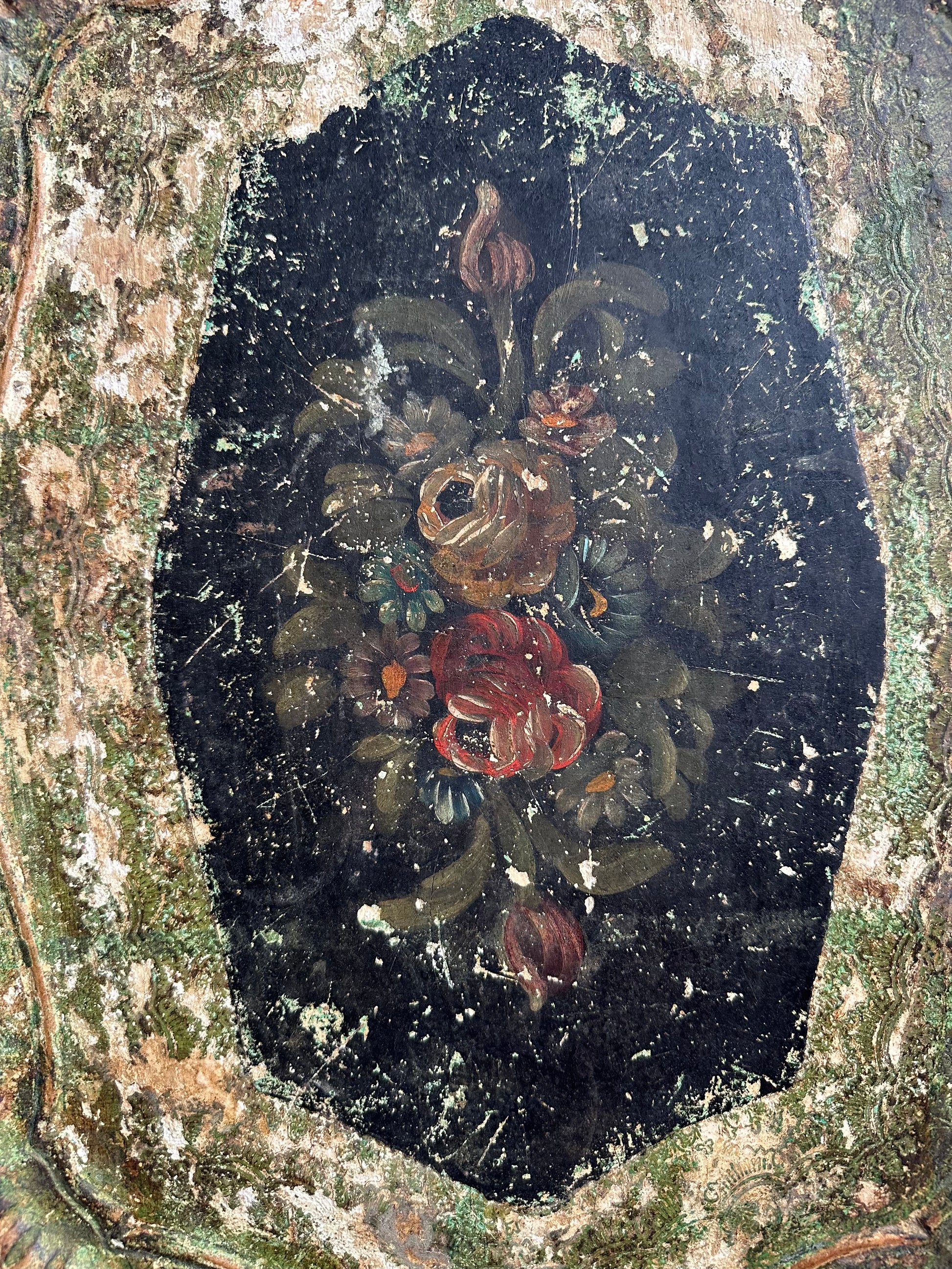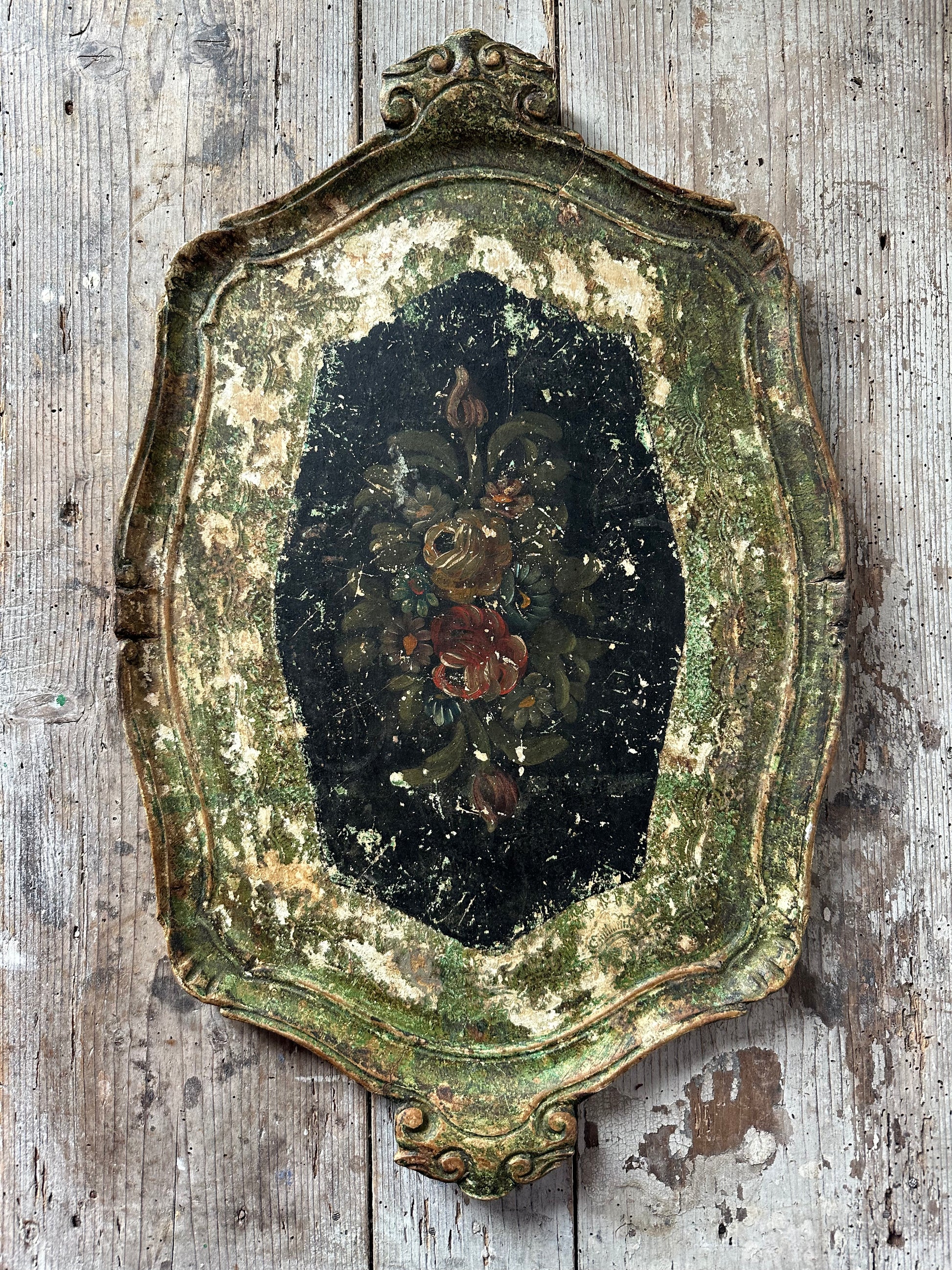 Ancien plateau florentin en bois peint
