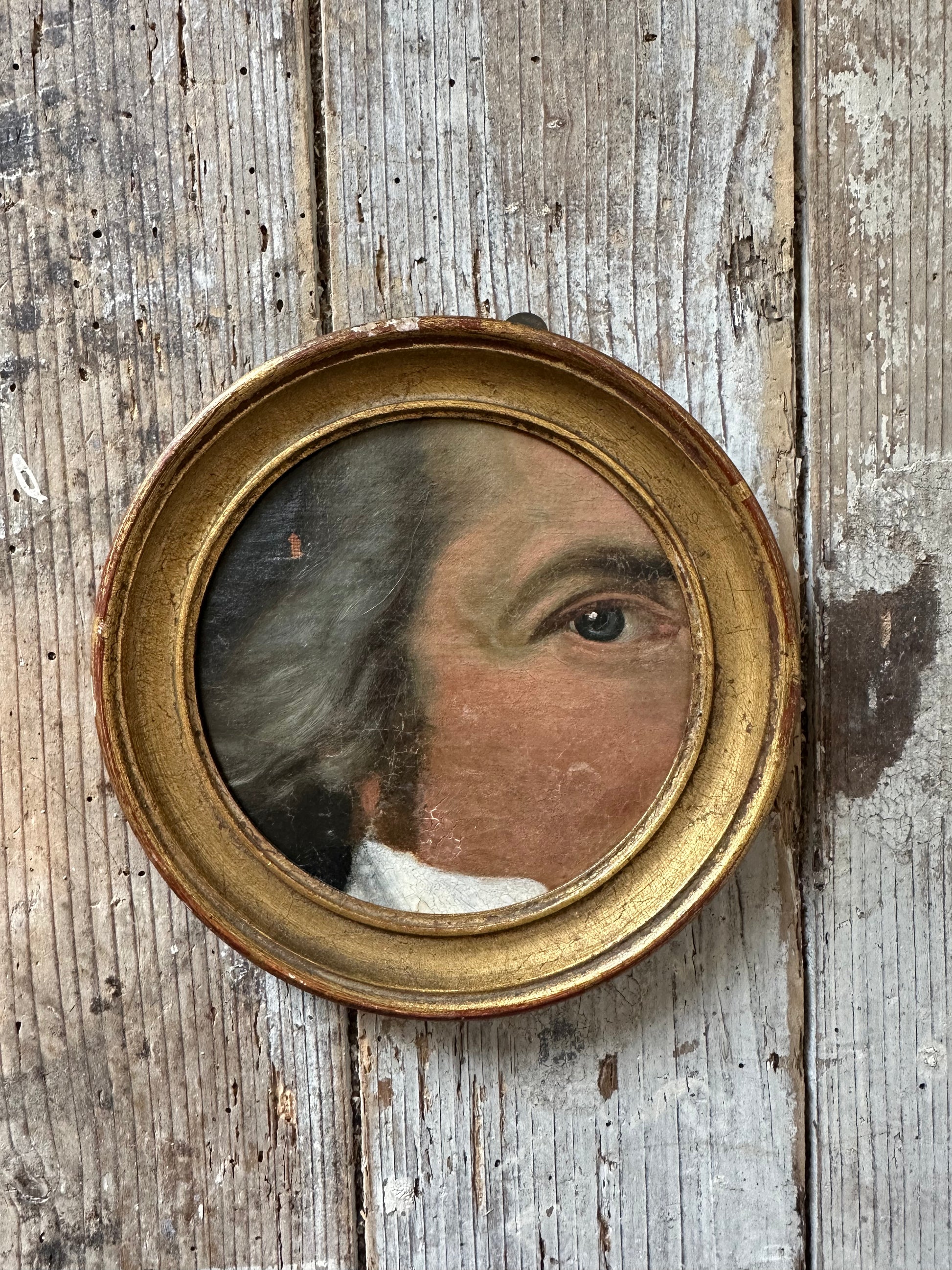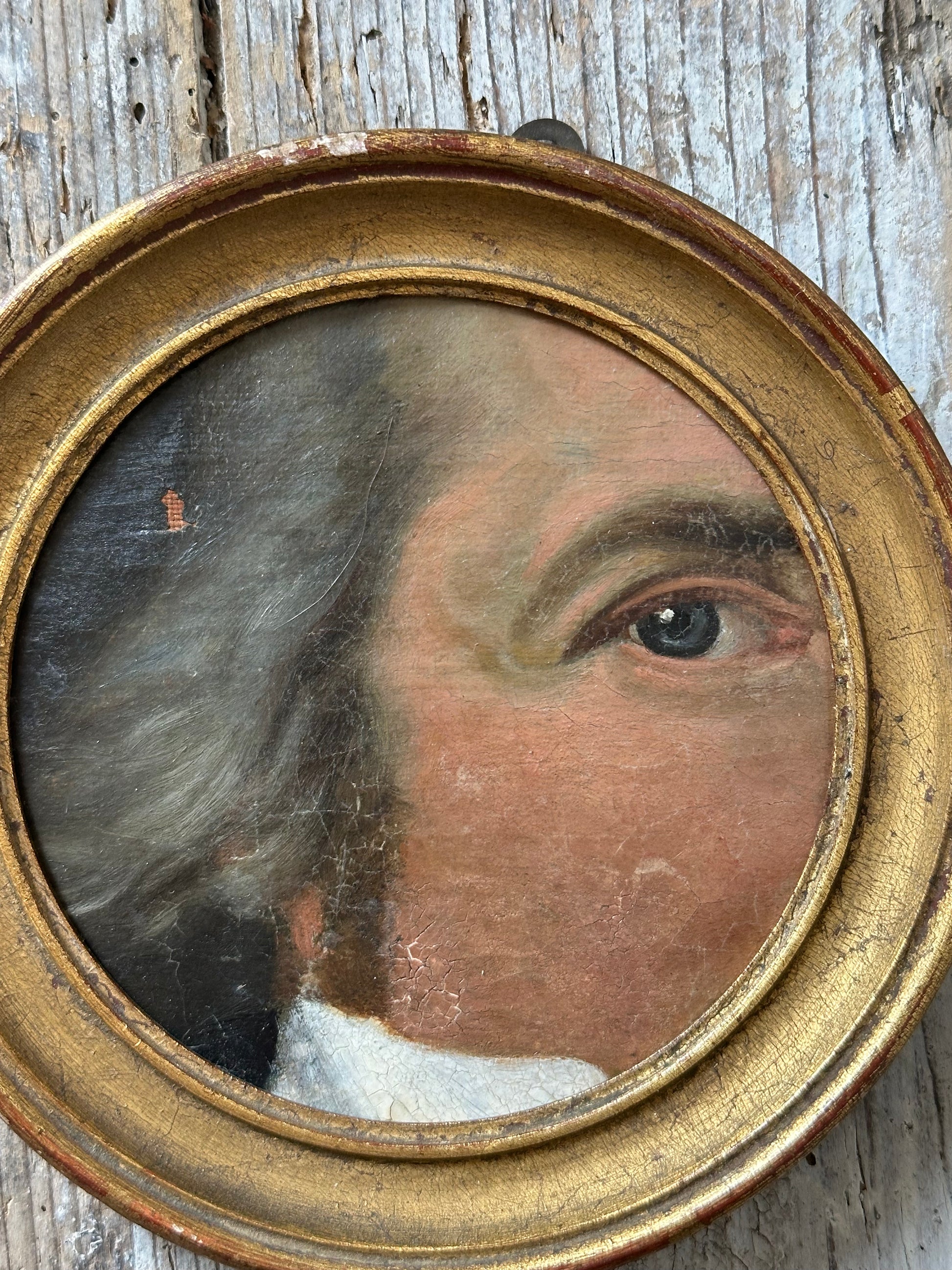 peinture à l’huile sur toile dans son cadre rond en bois doré