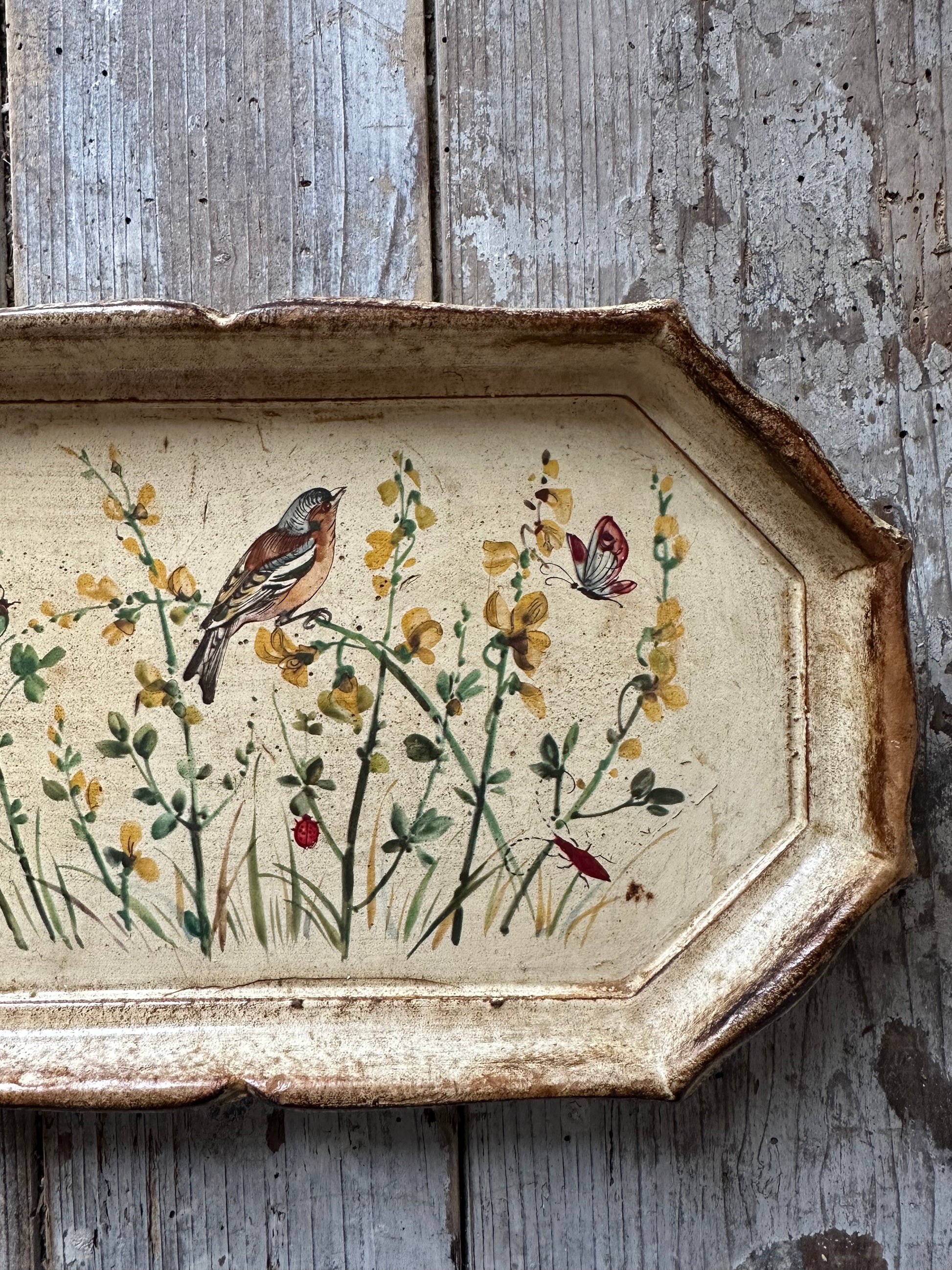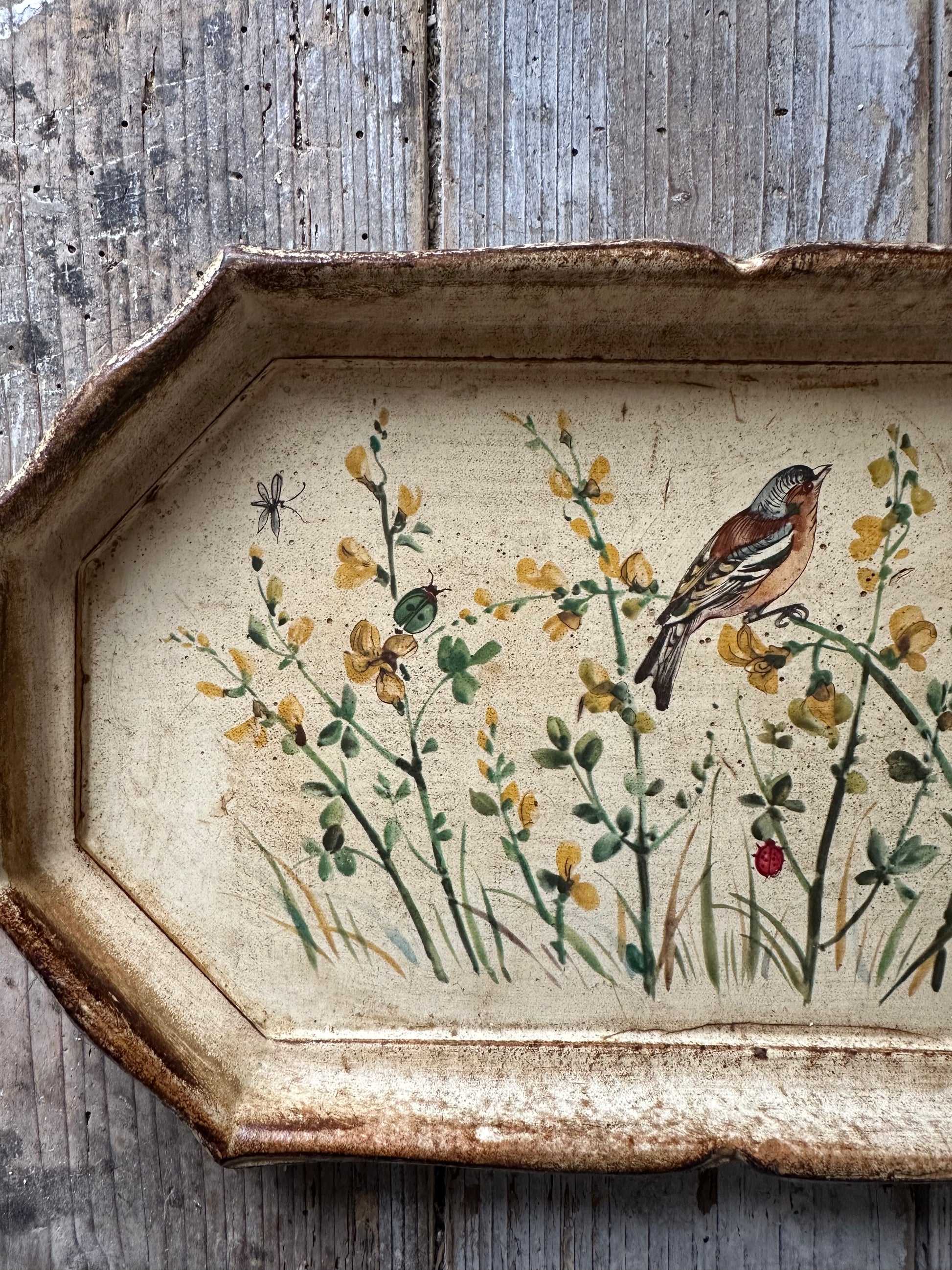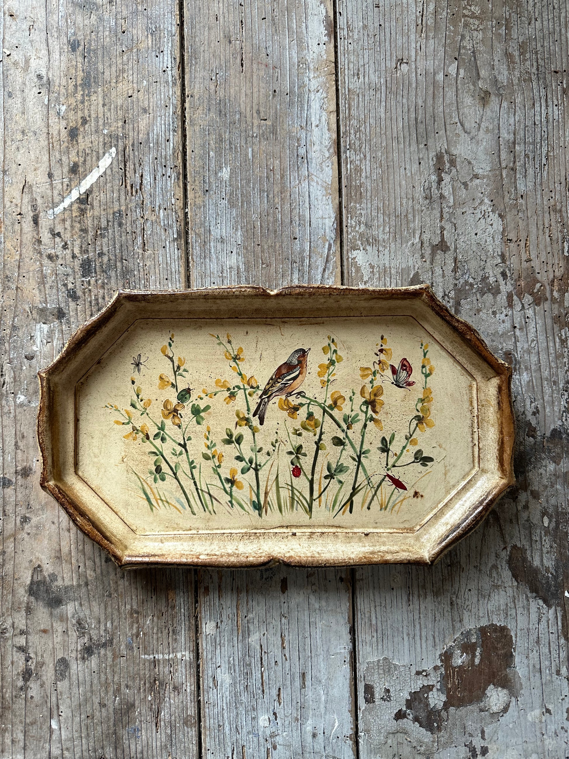 Plateau vide poche au décors de fleurs et d’oiseau.