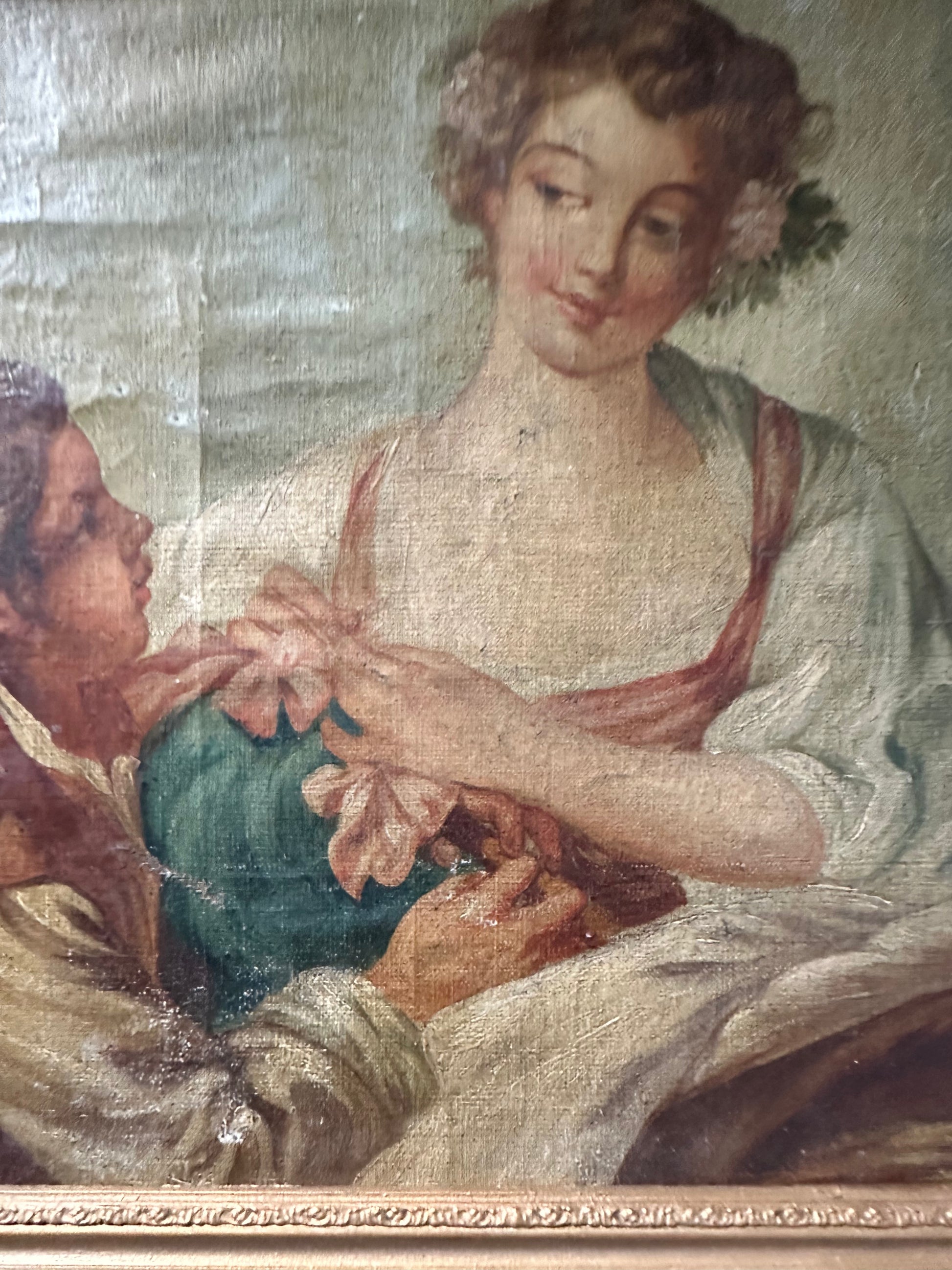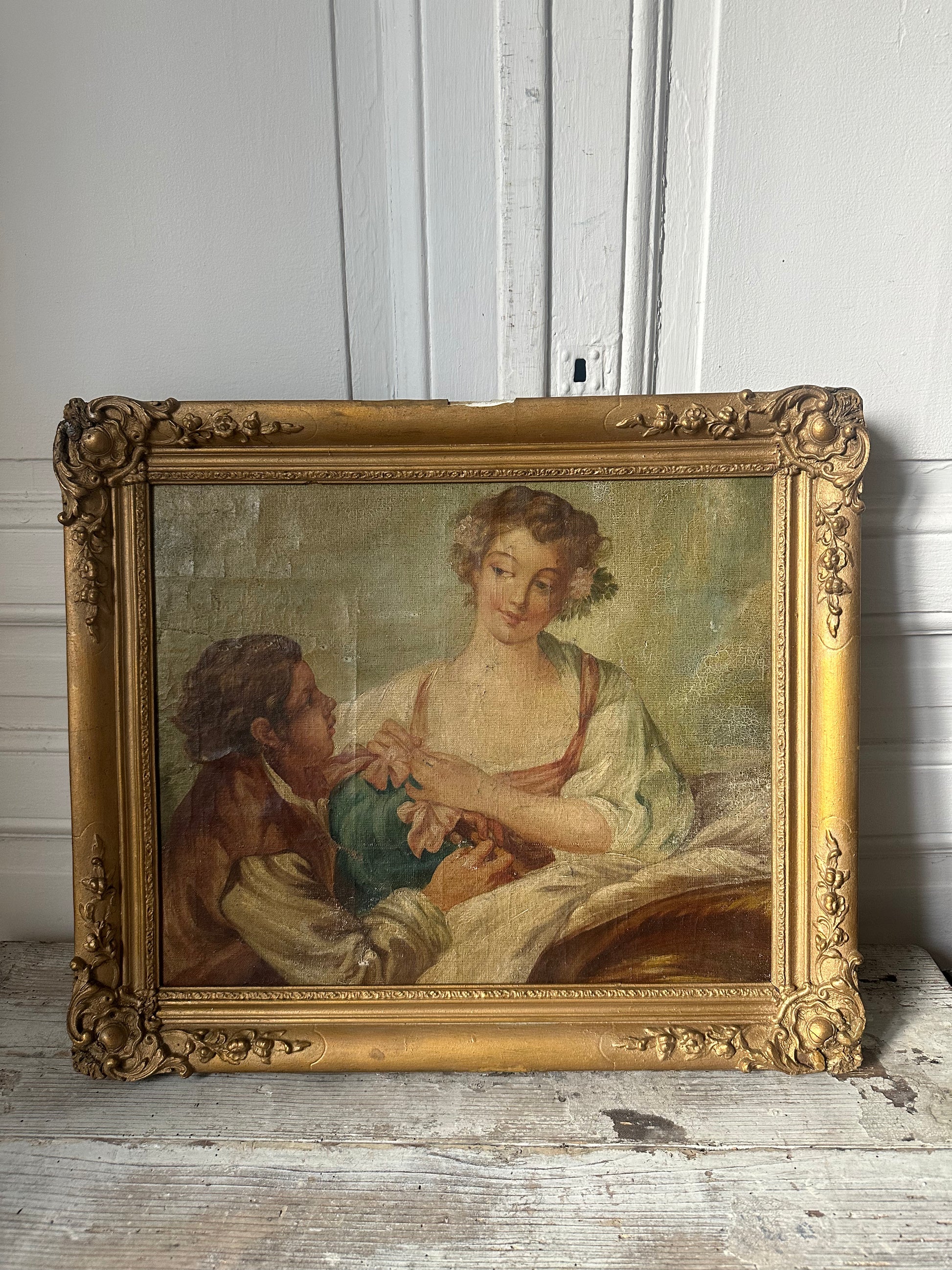 Peinture à l’huile sur toile marouflée sur isorel et encadrée