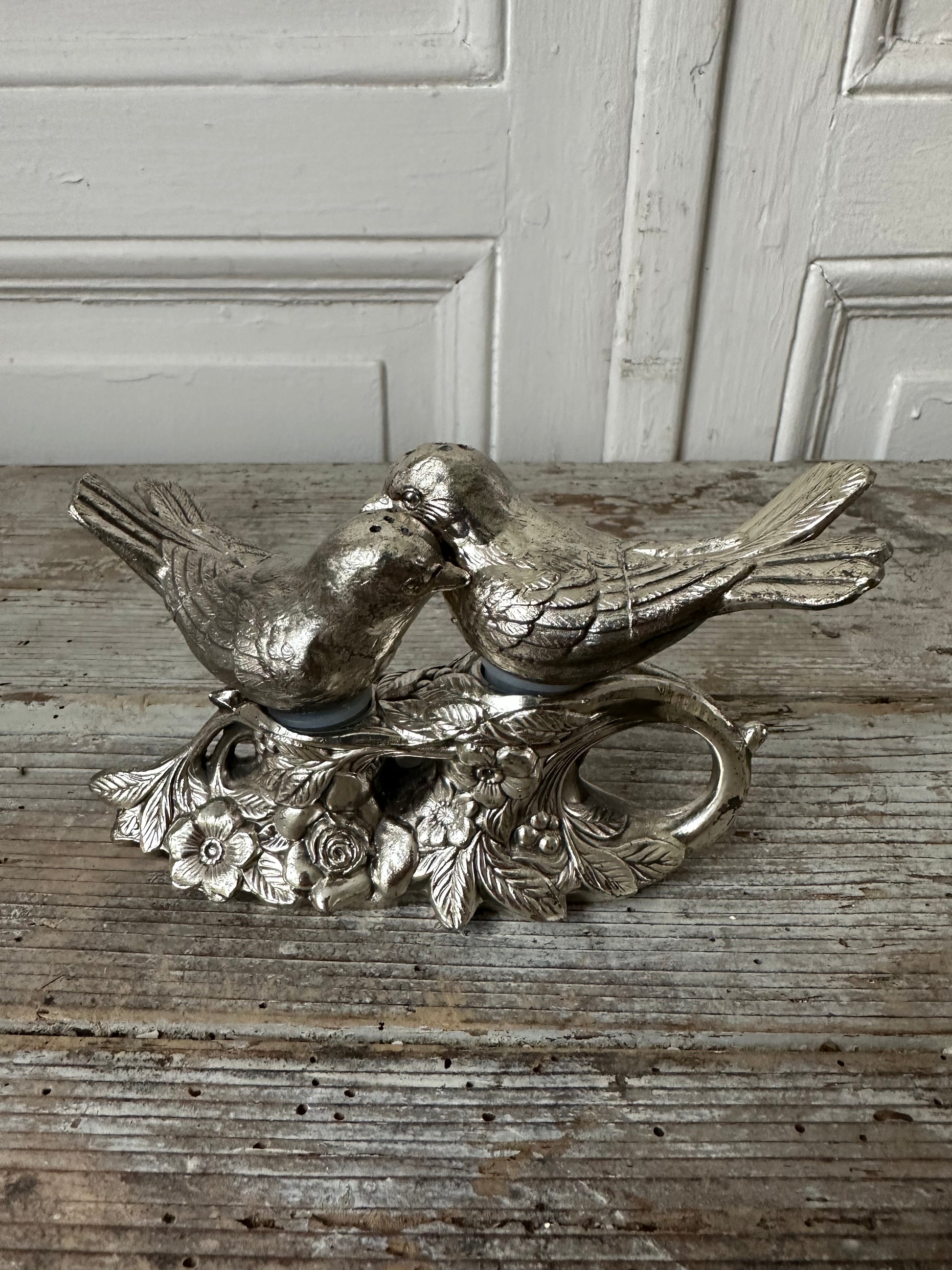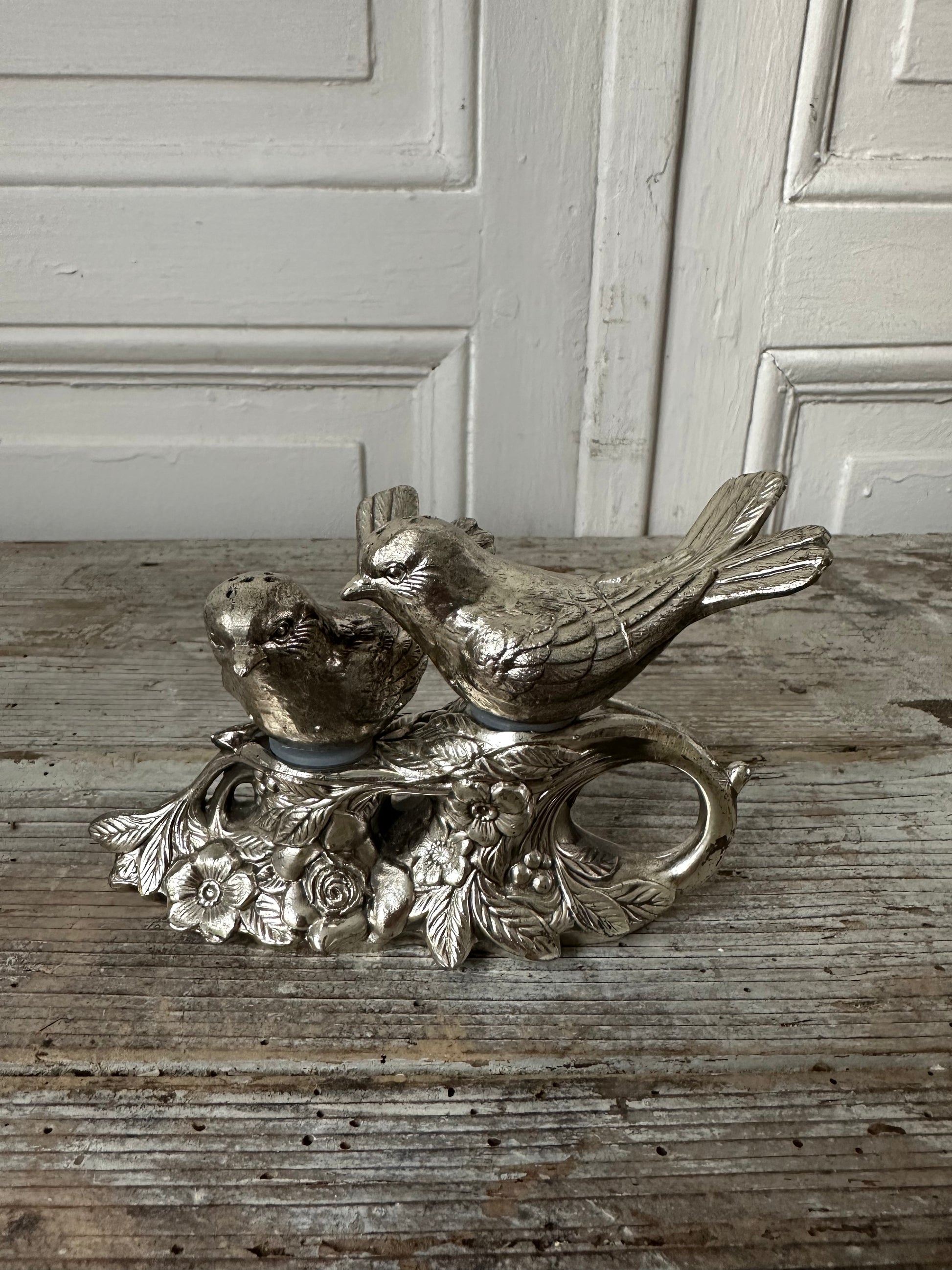 Serviteur sel et poivre aux oiseaux en métal argenté