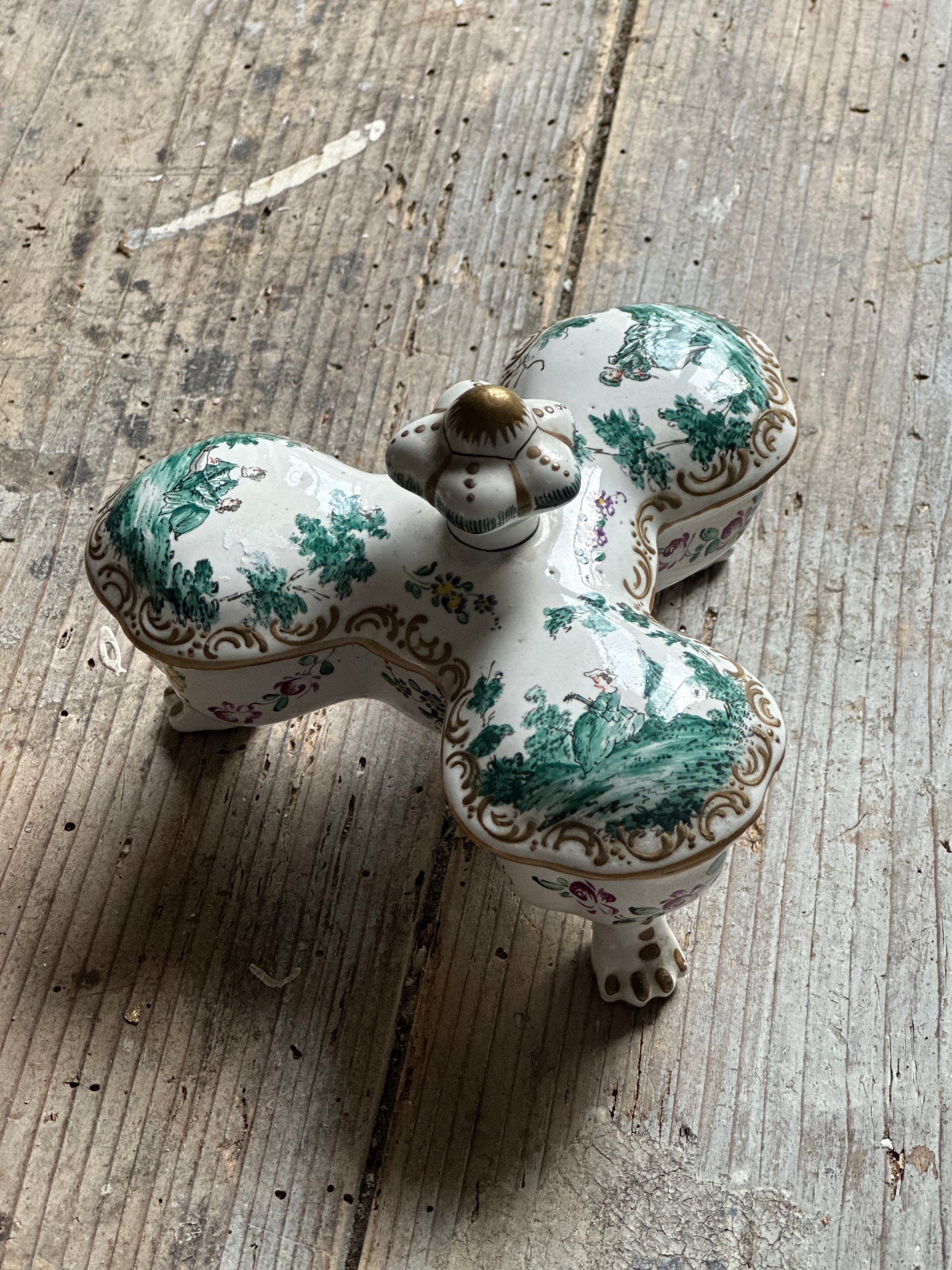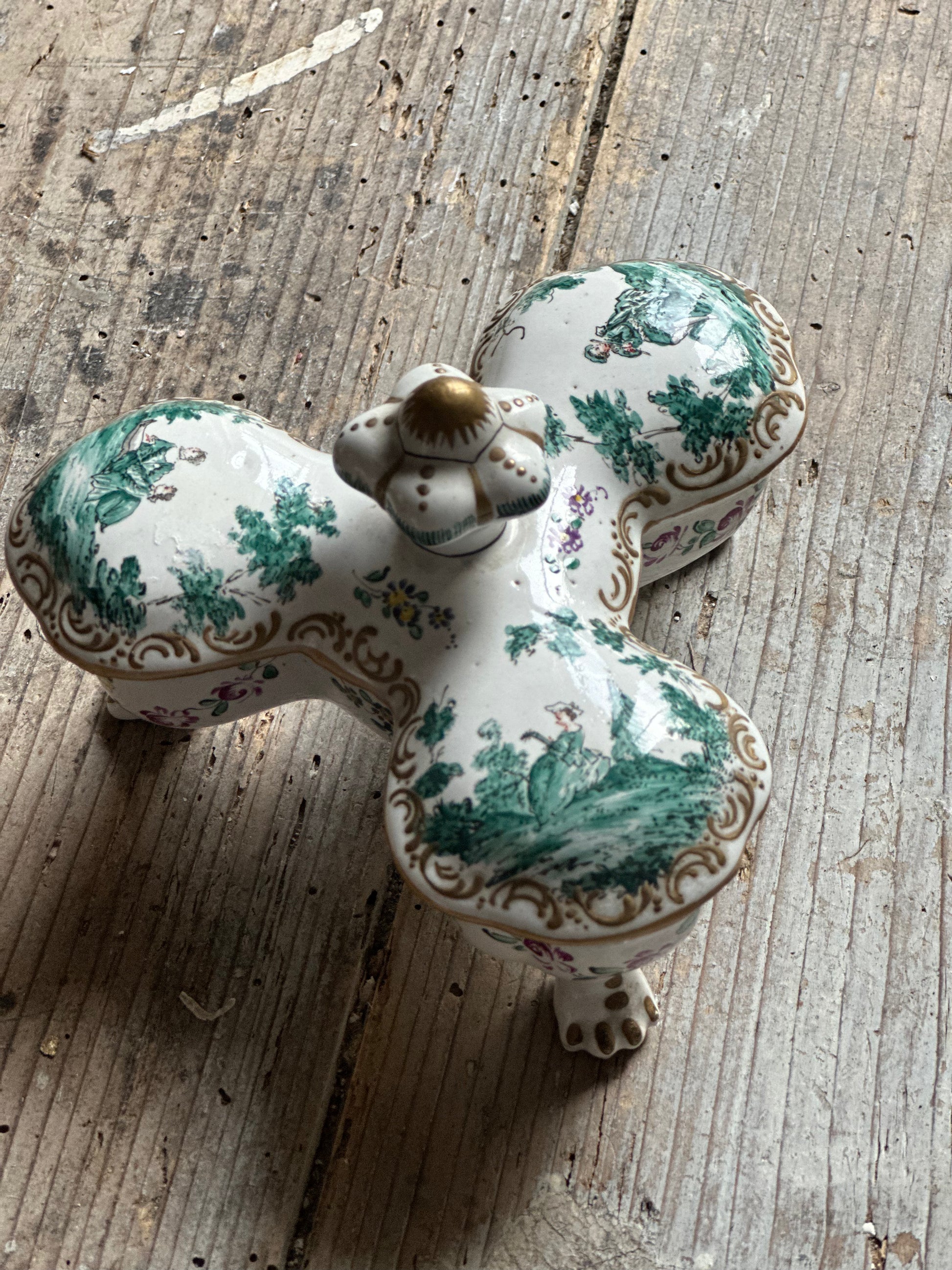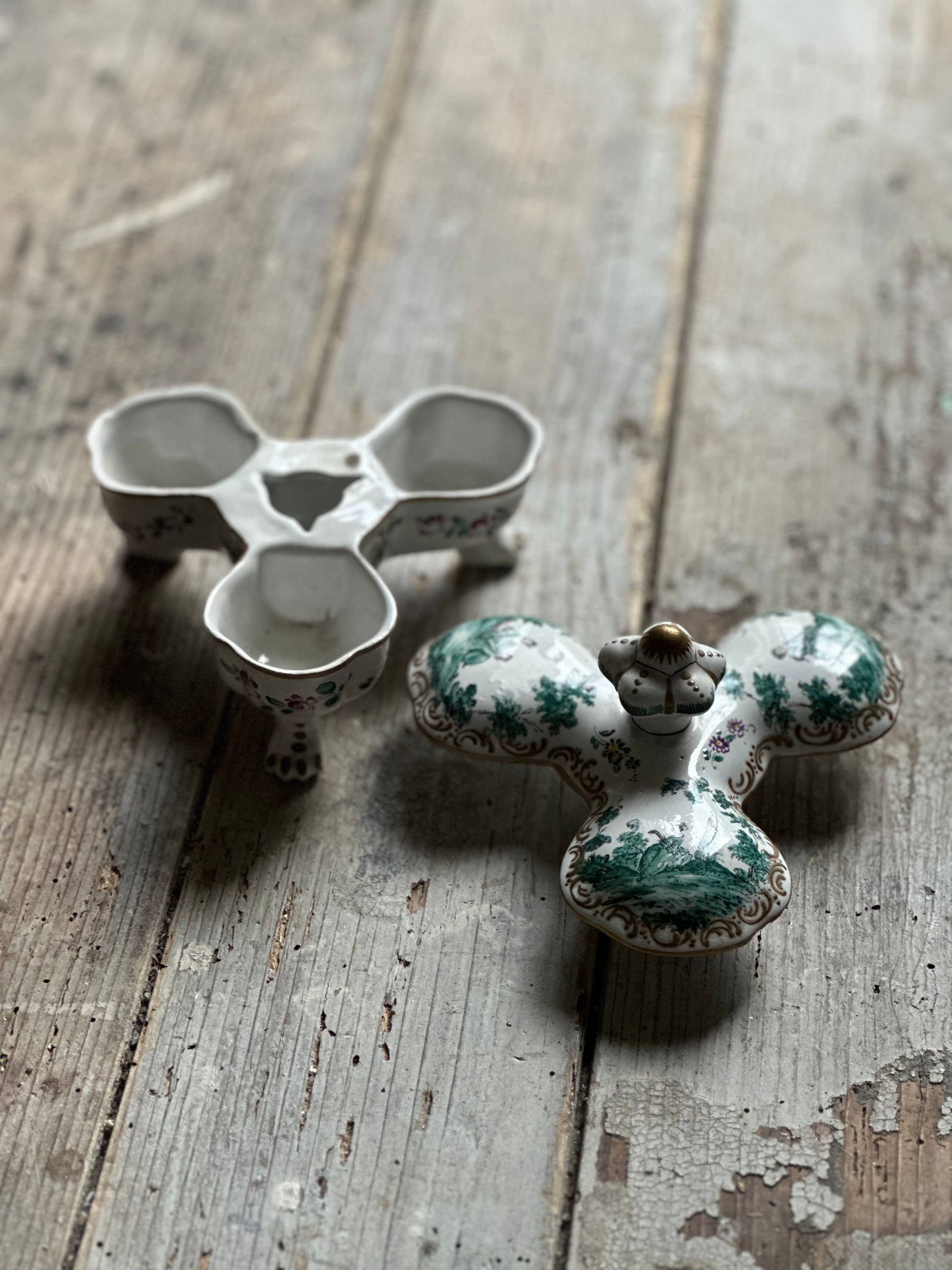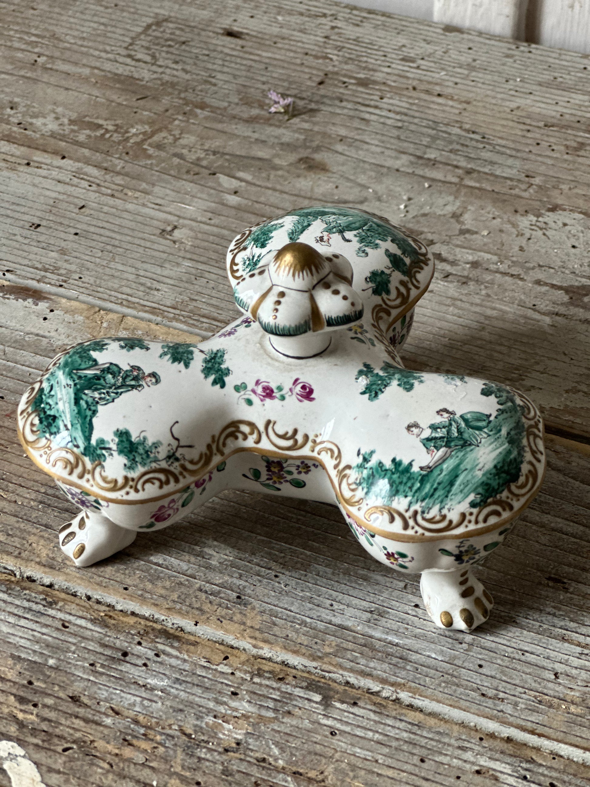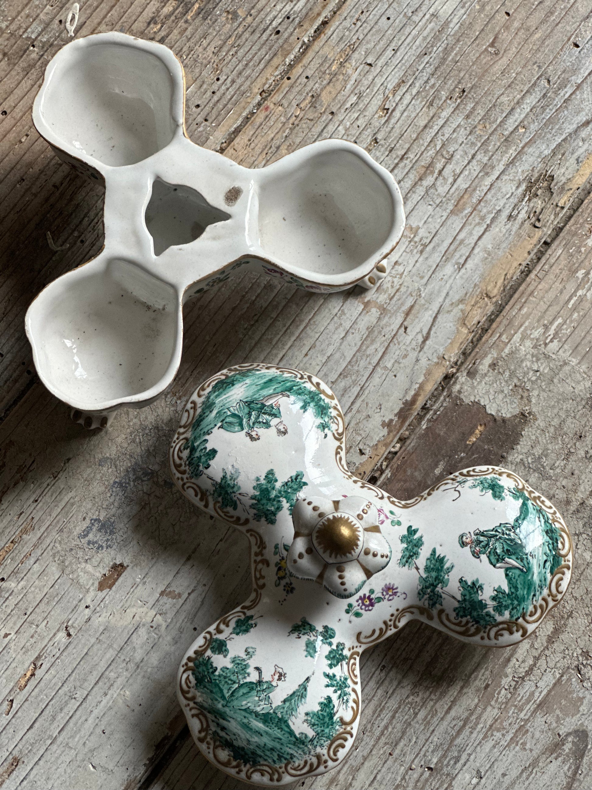 Ancien serviteur en porcelaine à décors de personnages peints à la main